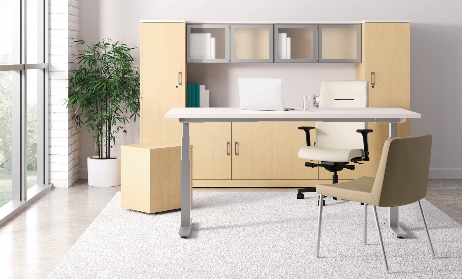 At Discount Office Equipment, we offer a wide selection of new desks ranging from executive office desks to home office desks. Selecting the right desk is based on form and function for the tasks that you perform, storage capabilities, and should be the right size and shape for the user and their roles. From entry-level employees, whose needs require a desk with less functionality, to executive corner offices that require desks with storage and discretionary locking capabilities, we have something to suit everyone's needs.